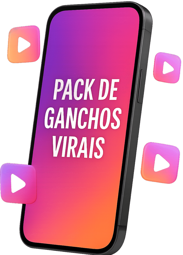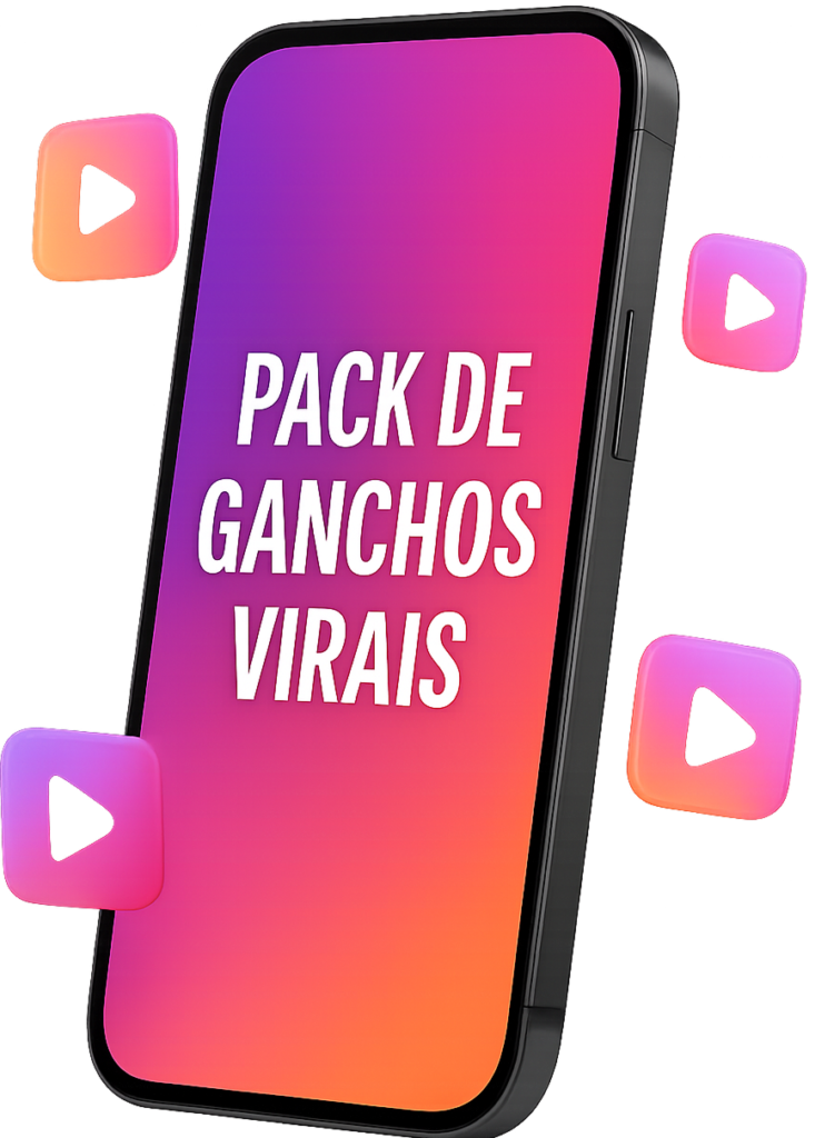 100 ganchos pra você colar no início dos seus Reels e ativar o algoritmo logo nos primeiros segundos. São ganchos de impacto que aumentam a retenção e potencializam a chance do seu conteúdo viralizar