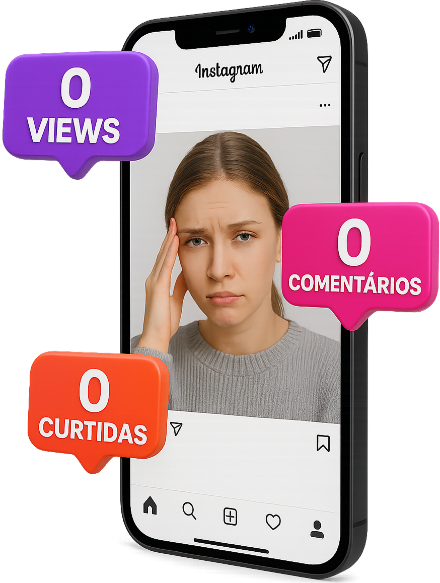 Se frustrar com engajamento baixo, se sentir invisível nas redes sociais, e achar que crescer é só pra quem impulsiona ou tem sorte.